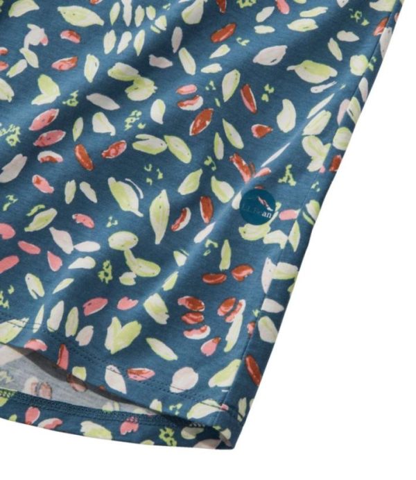- Flattering tulip hem extends longer in the rear for extra coverage.